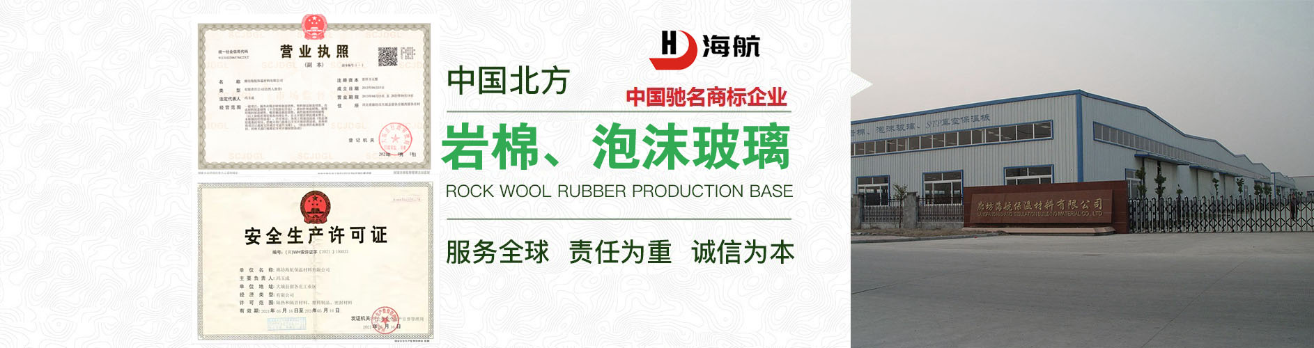 廊坊市海航保溫材料有限公司 地處河北廊坊留各莊高新技術產(chǎn)業(yè)園區(qū),是集研發(fā)、生產(chǎn)和銷售于一體的大型企業(yè),擁有11年保溫建材行業(yè)生產(chǎn)經(jīng)驗,公司產(chǎn)品齊全,其中泡沫玻璃制品包括: 泡沫玻璃保溫板 、 泡沫玻璃保溫管 、 泡沫玻璃保溫磚 ; 巖棉制品包括 : 巖棉板 、 復合巖棉板 、 外墻巖棉板 、 巖棉氈 、 巖棉條 、 巖棉管 等保溫材料。 產(chǎn)品廣泛應用于地鐵、樓房屋頂、外墻防火隔離帶、石化、發(fā)電、航天、 鋼鐵、煉油、乙烯等行業(yè)的保冷、防腐、工程中。采用世界先進的設備,成熟的工藝生產(chǎn),智能化操控,廢棄物循環(huán)利用,產(chǎn)品質量超過美國ASTM標準, 公司年產(chǎn)量50萬立方米的泡沫玻璃,80萬立方米橡塑海綿,5萬噸巖棉制品,4萬噸玻璃棉制品,16萬立方米擠塑板
